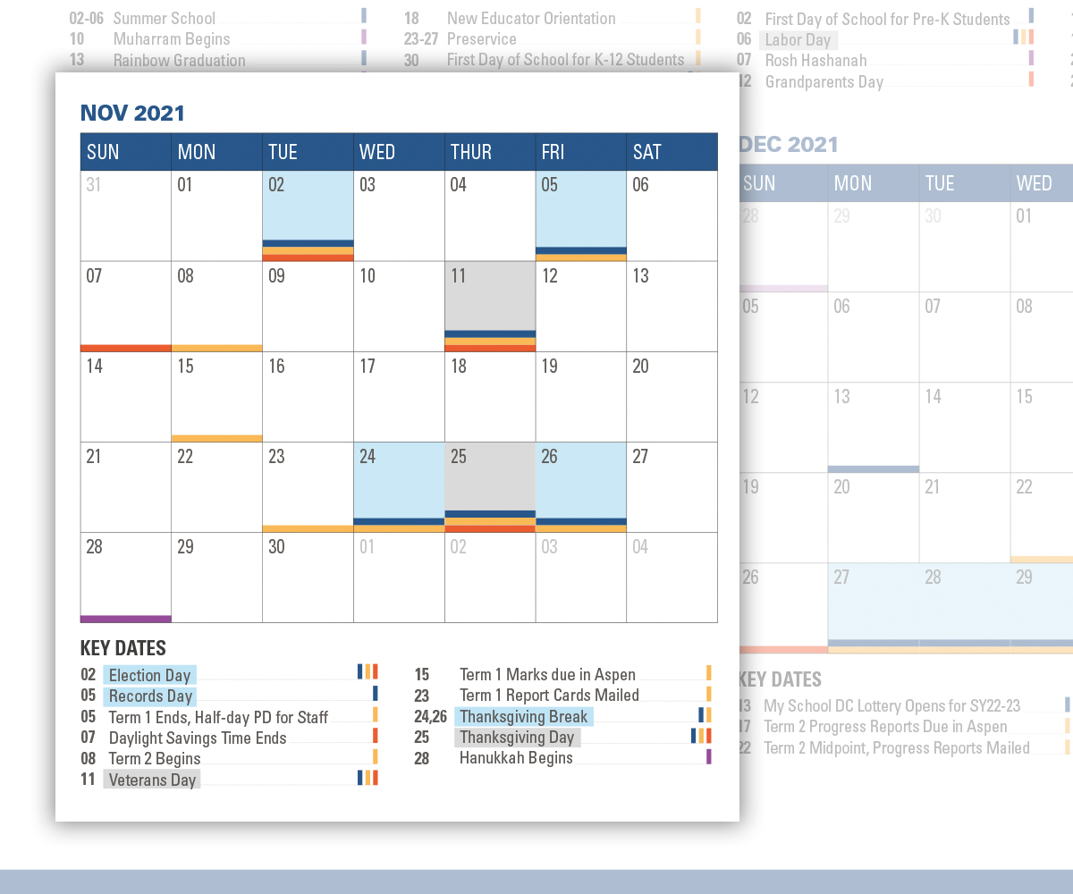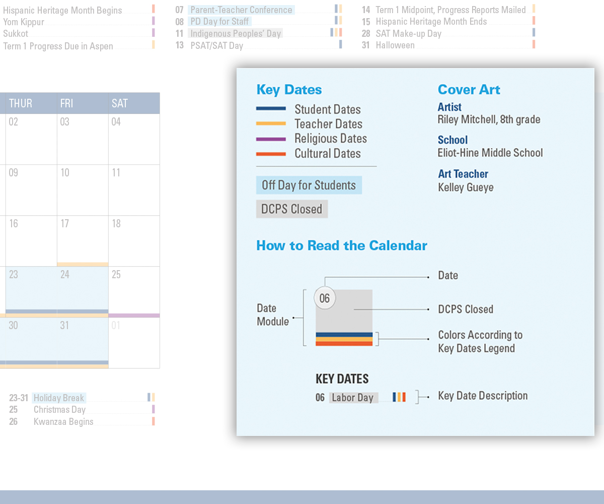 The calendar is shared with students, families, teachers, administrators and all friends of DC Public Schools city-wide. It is an important communications tool for multiple audiences.