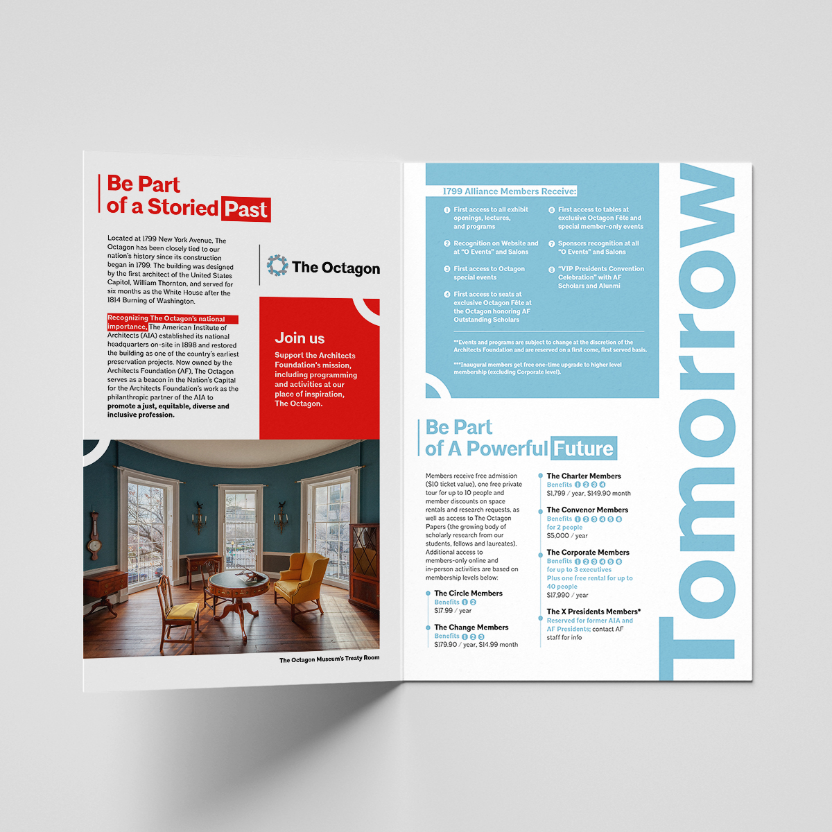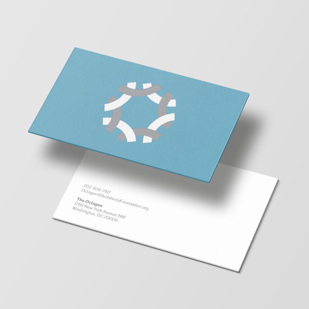 Using a color palette that compliments the AIA brand colors, MMD created a mark as part of the new logo that conveys the rich history of the building with a visual symbolism referencing its name, and most importantly provides an illustrative reference to the mission of the Foundation. The interlocking graphics that make up the mark represent the Foundation’s vision is to work towards a more inclusive profession.